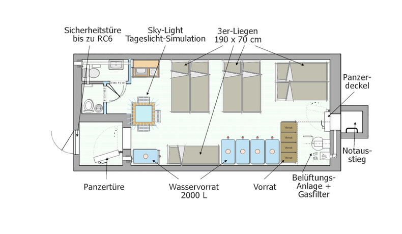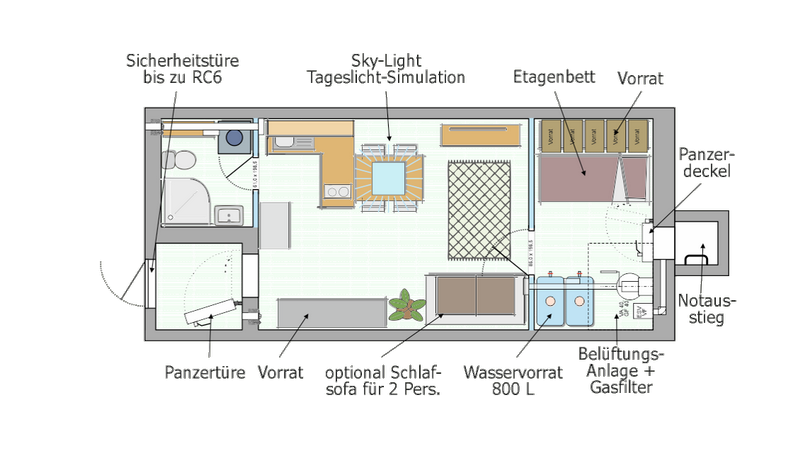 - Kompakt-Apartment: Effizient gestaltete Schutzräume mit optimal genutzter Fläche.