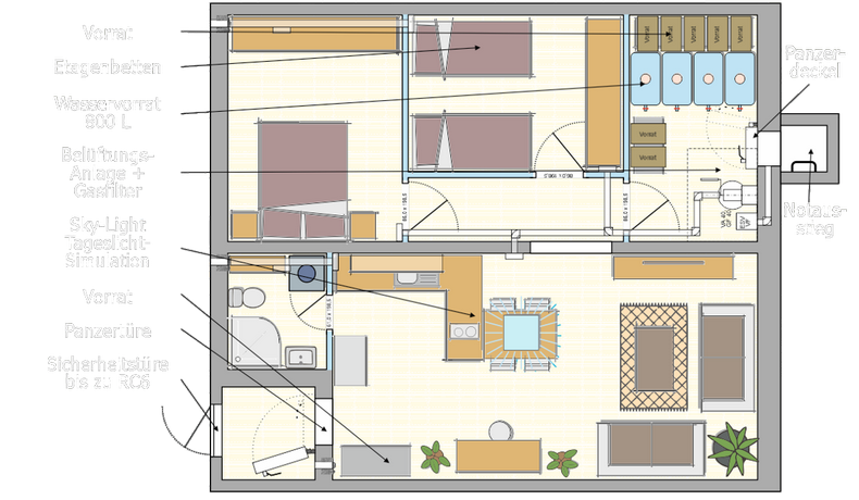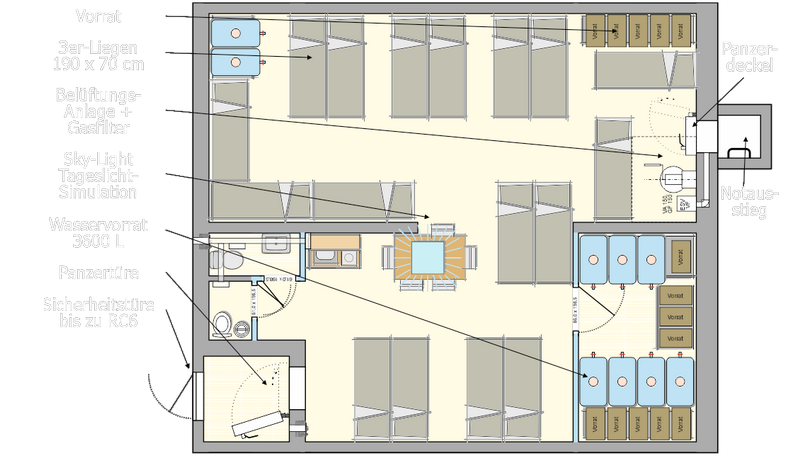 - jedes Apartment mit eigener Panzertür und separatem Notausstieg